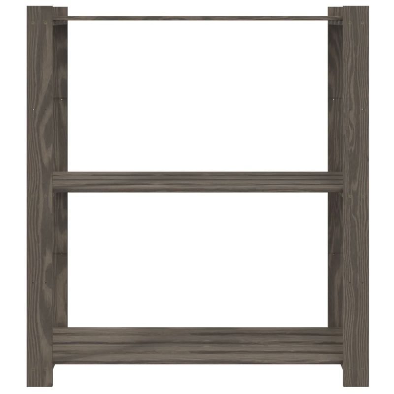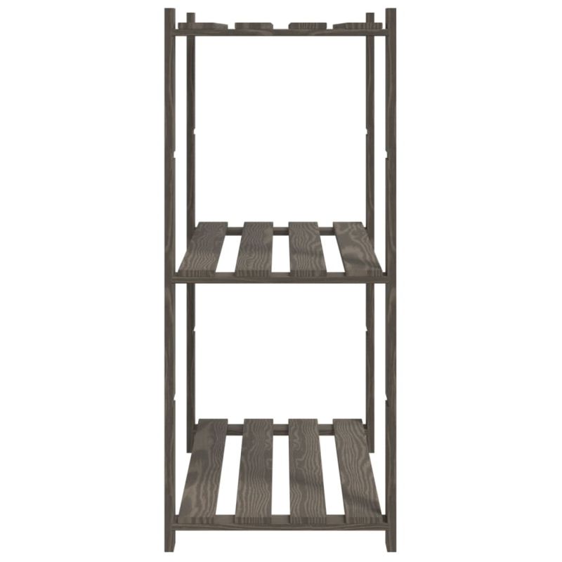 3-етажен стелаж за съхранение, сив, 80x38x90 см, бор масив
