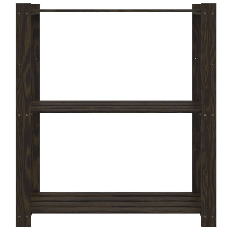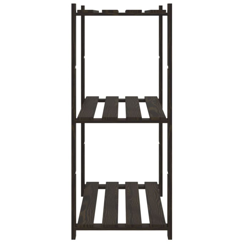 3-етажен стелаж за съхранение, черен, 80x38x90 см, бор масив
