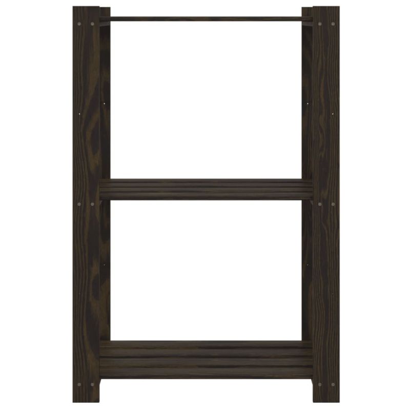 3-етажен стелаж за съхранение, черен, 60x38x90 см, бор масив