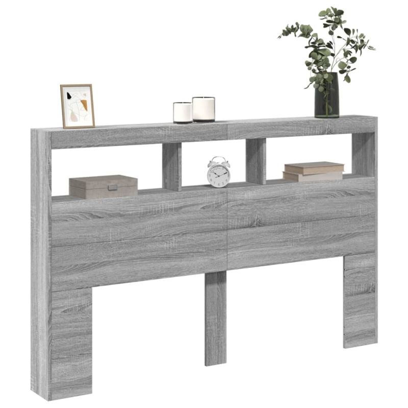 Табла шкаф с LED, сив сонома, 160x17x102 см