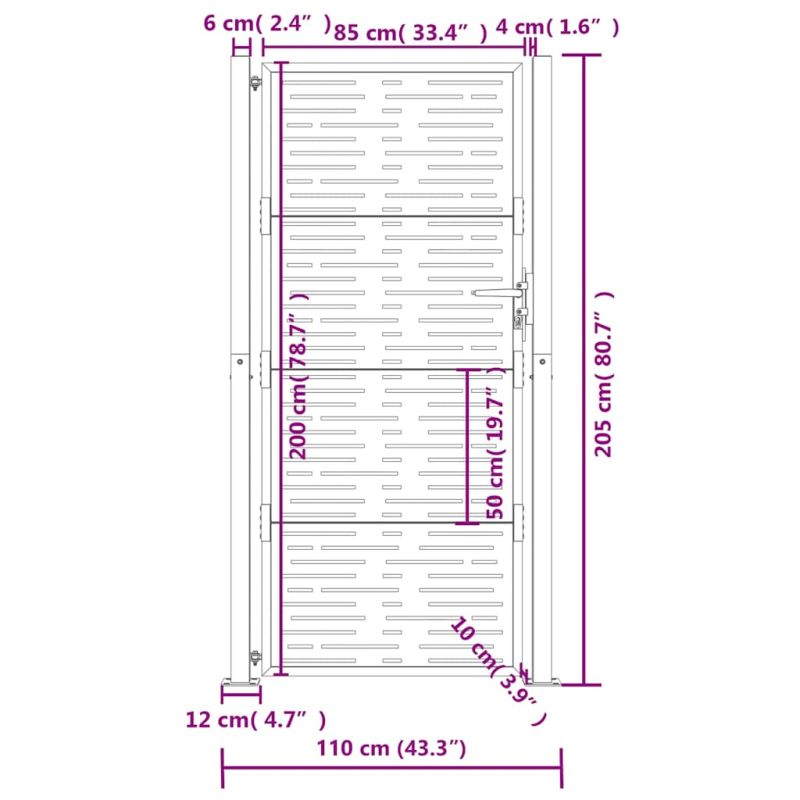 Тази градинска порта, отличаваща се с перфектна комбинация от здравина и елегантност, е идеална врата за оградата около вашата градина или вътрешен двор. Издръжлив материал: Стоманата е изключително твърд и здрав материал. Тя предлага здравина и стабилност. Поцинковането осигурява по-добра защита срещу корозия и е полезно за продукти, които ще се използват на открито, както и при неблагоприятни условия. А праховото покритие върху стоманата създава защитен слой срещу износване.Лазерно изрязан дизайн: Страничната порта има красив лазерно изрязан дизайн, който добавя специален чар към вашия дом.Заключваща се система: Стоманената порта е оборудвана със заключваща се система за допълнителна сигурност.Стабилна основа: 4-те монтажни отвора в основата на стълба на портата ви позволяват да го фиксирате към земята за допълнителна стабилност. Добре е да се знае:Този продукт трябва да бъде сглобен. Не използвайте този артикул, ако някой от компонентите е счупен, скъсан или липсва.