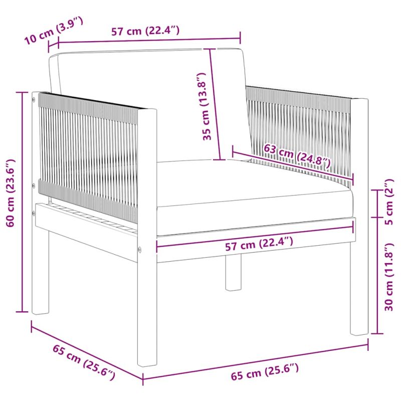 Със практичния рустик дизайн, тези градински столове ще дадат нещо ново на вашето външно жилищно пространство! Благодарение на масивния акациев материал, столовете се отличават с изключителна издръжливост и затова са подходящи за употреба на открито. С отличителния си дизайн на сплетено въже, тези градински мебели ще се превърнат в истински акцент. В допълнение, те са леки и лесни за местене. Дебело подплатените възглавници гарантират комфорта ви при седене. Със сигурност ще се насладите на свободното си време на тези прекрасни столове! Доставката включва 2 стола.