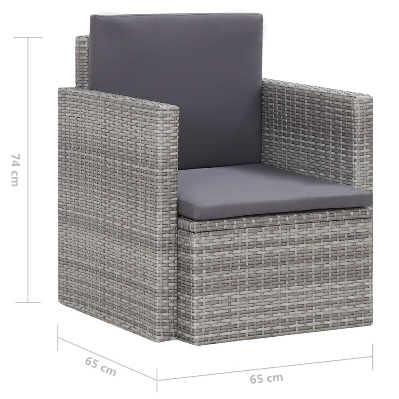 Градински стол с възглавници, полиратан, сив