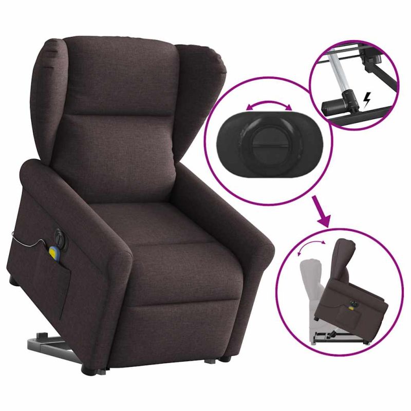 Електрически изправящ масажен реклайнер стол тъмнокафяв текстил