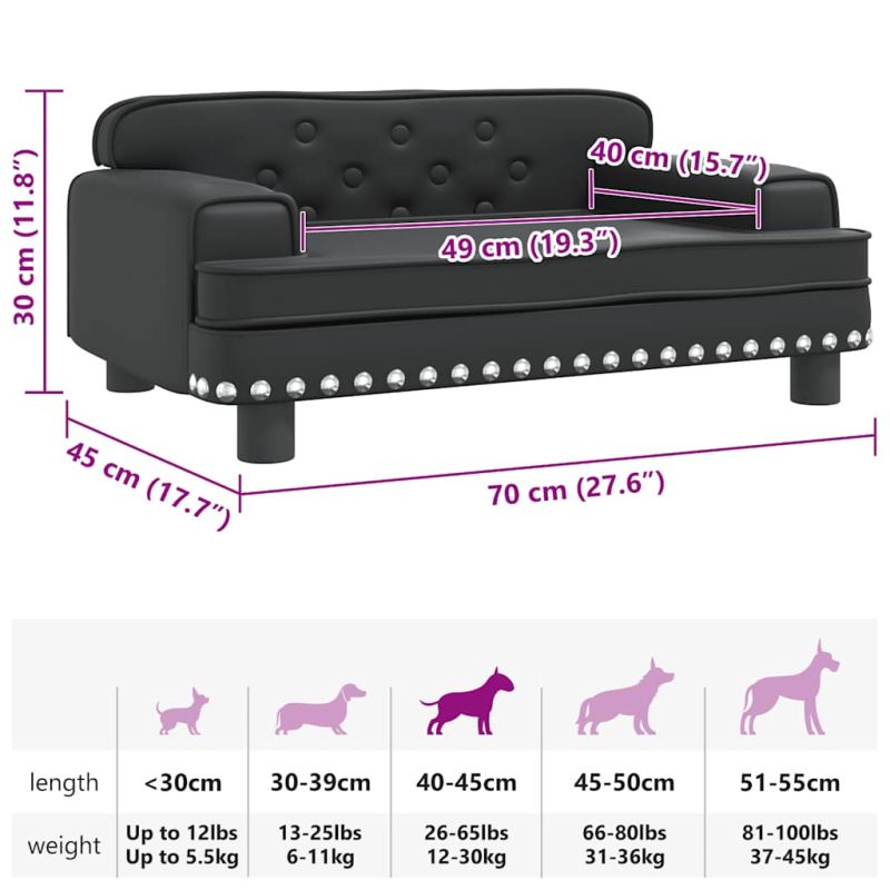 Снабдете вашето пухкаво приятелче с топло и удобно място за почивка с това луксозно легло за кучета! Удобен и мек материал: Диванът за домашни любимци е подплатен с плътна и мека пяна и покрит с изкуствена кожа, осигурявайки достатъчно опора и превъзходен комфорт за вашия прекрасен домашен любимец да почива на него.Здрава и издръжлива рамка: Рамката от масивна борова дървесина осигурява здравина и издръжливост на кучешкия диван. Четирите крака също добавят допълнителна стабилност.Лесно почистване: Калъфът от изкуствена кожа на този диван за кучета е водоустойчив, устойчив на мръсотия, лесен за изтриване и почистване.Стилен дизайн: Този диван за кучета се съчетава идеално с всяка тема на декора и е чудесно допълнение към вашата всекидневна или спалня. Забележка:Моля, измерете дължината на тялото на вашия домашен любимец преди покупка.