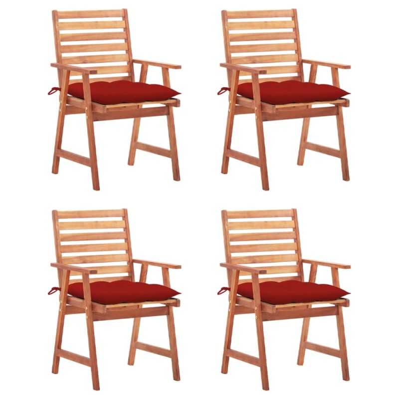 Градински трапезни столове, 4 бр, с възглавници, акация масив