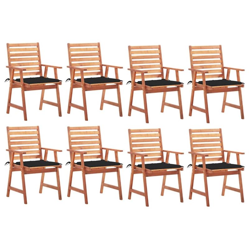 Градински трапезни столове, 8 бр, с възглавници, акация масив