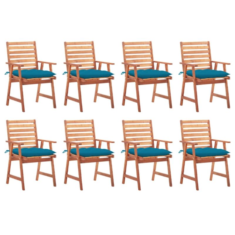 Градински трапезни столове, 8 бр, с възглавници, акация масив