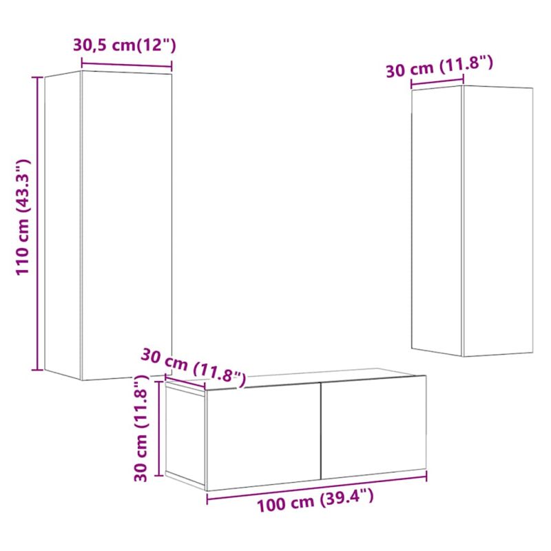 Този комплект шкафове за телевизор, монтирани на стена, се отличава с елегантен и стилен дизайн, който го прави декоративно и практично допълнение към вашия интериор. Стабилен и издръжлив материал: Инженерната дървесина е издръжлив и стабилен материал с гладка повърхност, която е устойчива на влага, изкривяване и разцепване, което я прави надежден избор за различни проекти.Голямо пространство за съхранение: Тази поставка за телевизор предлага удобно място за съхранение, за да държите различните си ежедневни принадлежности добре организирани и лесно достъпни.Удобен монтаж: Можете да монтирате вратата от лявата или дясната страна според вашите предпочитания.Модерен стил: Този шкаф за мултимедийни устройства добавя модерен стил към настоящия ви интериор! Модерният дизайн включва изчистени линии, минималистичен вид и естествена светлина като част от стила на интериорния дизайн. Добре е да се знае:Винтовете и дюбелите за вътрешната стена не са включени. Съветваме ви да намерите и използвате винтове и дюбели, подходящи специално за вашите стени. Ако не сте сигурни, можете да се консултирате с професионалист. Моля, прочетете и следвайте всяка стъпка от инструкциите.