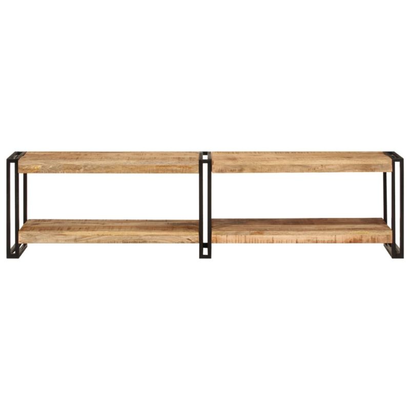 Този модерен дървен ТВ шкаф се отличава с елегантен и стилен дизайн, предназначен да бъде декоративно и практично допълнение към декора на вашата стая. Масивна мангова дървесина: Масивната дървесина от манго е здрава тропическа дървесина, от която се произвеждат здрави мебели. Красивите ѝ дървесни шарки правят всяка мебел малко по-различна от следващите.Достатъчно място за съхранение: ТВ поставката с рафтове предлага достатъчно място за съхранение, за да поддържате най-важните си вещи добре организирани и подръка.Метална рамка: Металната рамка осигурява здравина и стабилност.Функция за декорация: Здравият плот на тази ТВ пейка е идеалното място за нареждане на саксийни растения, снимки с рамки и други декоративни елементи. Добре е да се знае:Цветовете и шарките могат да варират от мебел до мебел, което прави всяка една уникална. Доставката е на случаен принцип, което гарантира ексклузивността и индивидуалността на вашия продукт.