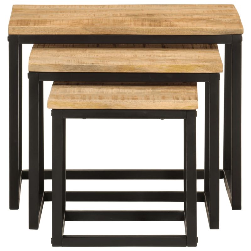 Стифиращи масички за кафе, 3 бр, мангово дърво масив и желязо
