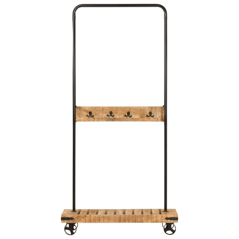 Щендер за дрехи с колела 90x35x190см манго дърво масив и желязо