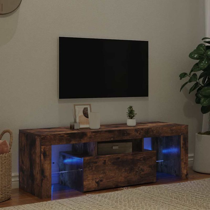 ТВ шкаф с LED осветление, опушен дъб, 120x35x40 см