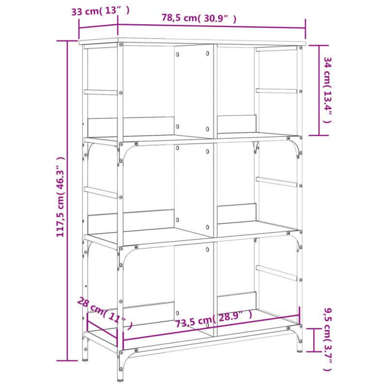 Библиотека дъб сонома 78,5x33x117,5 см инженерно дърво и желязо