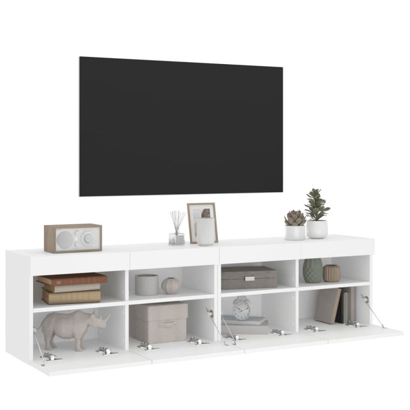 Стенни ТВ шкафове с LED осветление, 2 бр, бели, 80x30x40 см