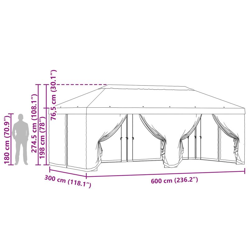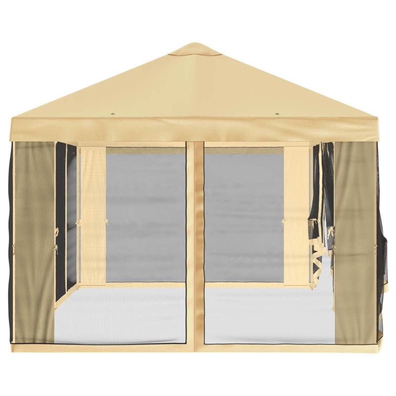 Това покривало за беседка с мрежести странични стени е супер удобно решение за сенчести места на открито. Идеално е за всяка градина или тераса, има готини елементи, които помагат да изглежда стилно. Освен че ви предпазва от слънцето, позволяват да се движи въздуха, така че да е приятно за сядане. Създава приятна обстановка, перфектна за неформални или официални събирания, и ви позволява да се насладите на прекрасното време навън. Полиестерен материал: Изработено от много здрав полиестер, който е устои на дъжд и запазва формата си. Лесно е за поддръжка, перфектно за натоварени любители на открито. Включени компоненти: В комплекта има покривало и шест странични стени, които предпазват от слънце и насекоми. Страничните стени са с велкро, за да се прикрепят бързо и безопасно. Дизайн за циркулация на въздуха: Уникалният покрив е с функция за циркулация, която помага да се предотврати натрупването на топлина и осигурява хладна среда. За открито използване: Направено специално за открито, идеално е за летни партита или спокойни дни. Изисква монтаж: Нужни са двама за правилно монтиране. Инструментите са основно отвертка и лесни инструкции, за да се насладите на вашето ново покритие навън.