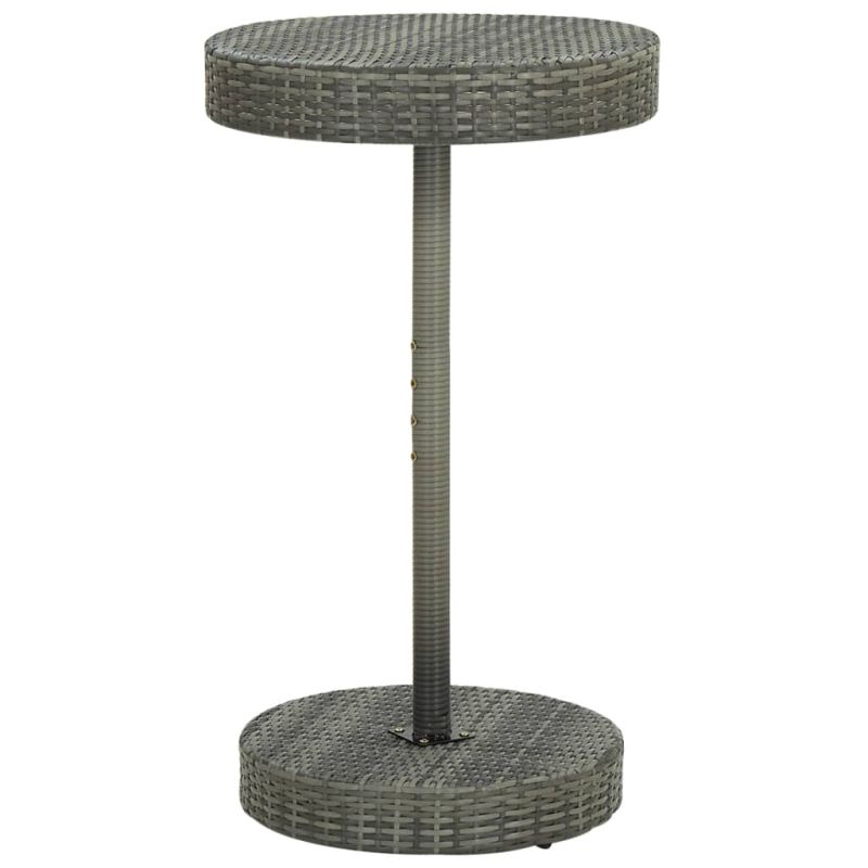 Този стилен градински бар комплект ви осигурява спокойно и комфортно прекарване със семейството и приятелите ви. Бар масата се поддържа от прахово боядисана стоманена рамка, което я прави стабилна и здрава. Кръглият плот е идеален за поставяне на напитки, храна или декоративни предмети. Табуретките са със здрава стоманена конструкция и са изработени от устойчив на атмосферни влияния РЕ ратан, осигуряващ стабилност и ги прави лесни за местене. Възглавницата и подложката за крака също доставят допълнителен комфорт при седене на табуретката. Калъфът за възглавница от полиестер със скрит цип улеснява почистването. Максимално 110 кг на седалка. Съобразете се с риска от открит огън и други източници на силна топлина в близост до продукта.