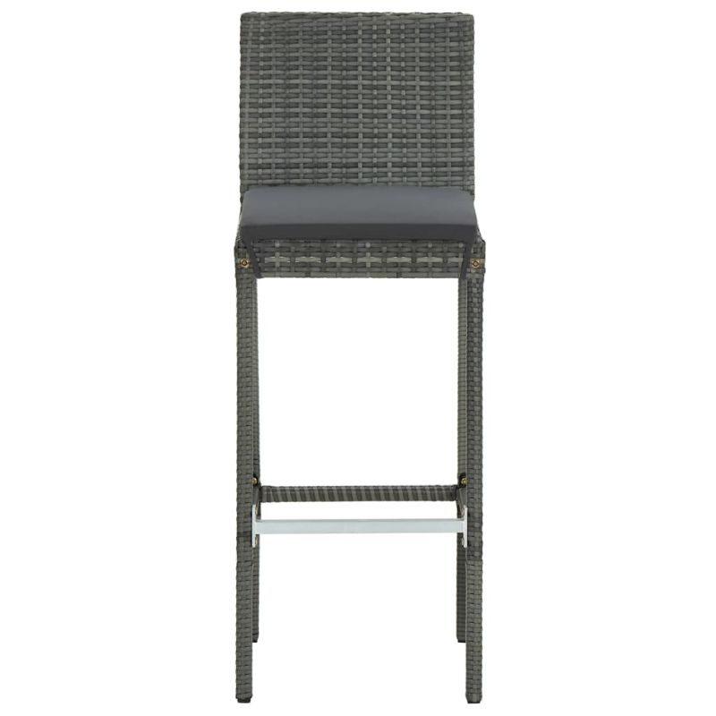 Градински бар комплект с възглавници, 3 части, полиратан, сив