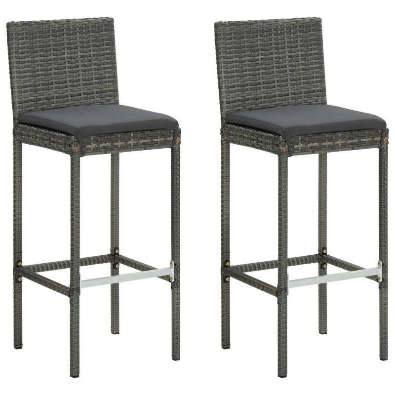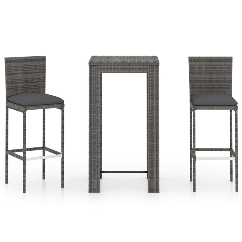Градински бар комплект с възглавници, 3 части, полиратан, сив
