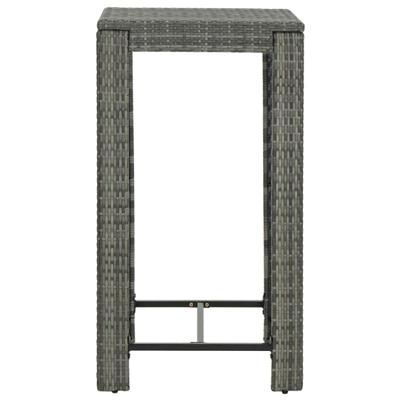 Този стилен градински бар комплект ви осигурява спокойно и комфортно прекарване със семейството и приятелите ви. Бар масата се поддържа от прахово боядисана стоманена рамка, което я прави стабилна и здрава. Квадратният плот е идеален за поставяне на напитки, храна или декоративни предмети. Табуретките са със здрава стоманена конструкция и са изработени от устойчив на атмосферни влияния РЕ ратан, осигуряващ стабилност и лекота за местене. Възглавницата и подложката за крака също доставят допълнителен комфорт при седене на табуретката. Калъфът за възглавница от полиестер със скрит цип улеснява почистването. Максимално 110 кг на седалка. Съобразете се с риска от открит огън и други източници на силна топлина в близост до продукта.