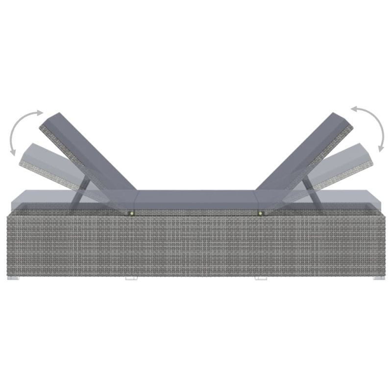Начало Дом и градина Мебели Външни мебели Външно обзавеждане Шезлонги Шезлонг с шалте и маса за чай, полиратан, сив