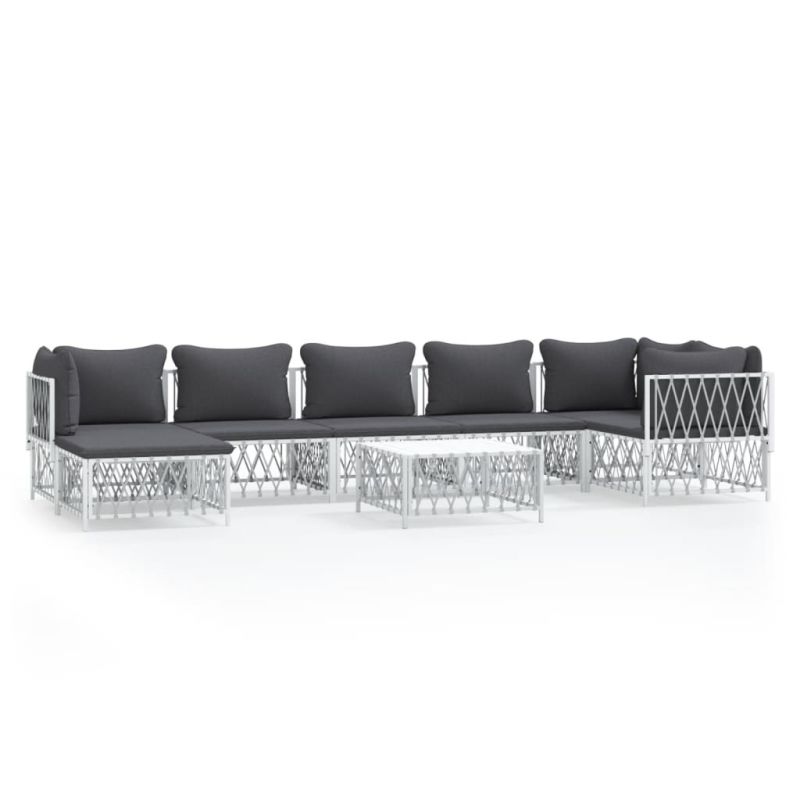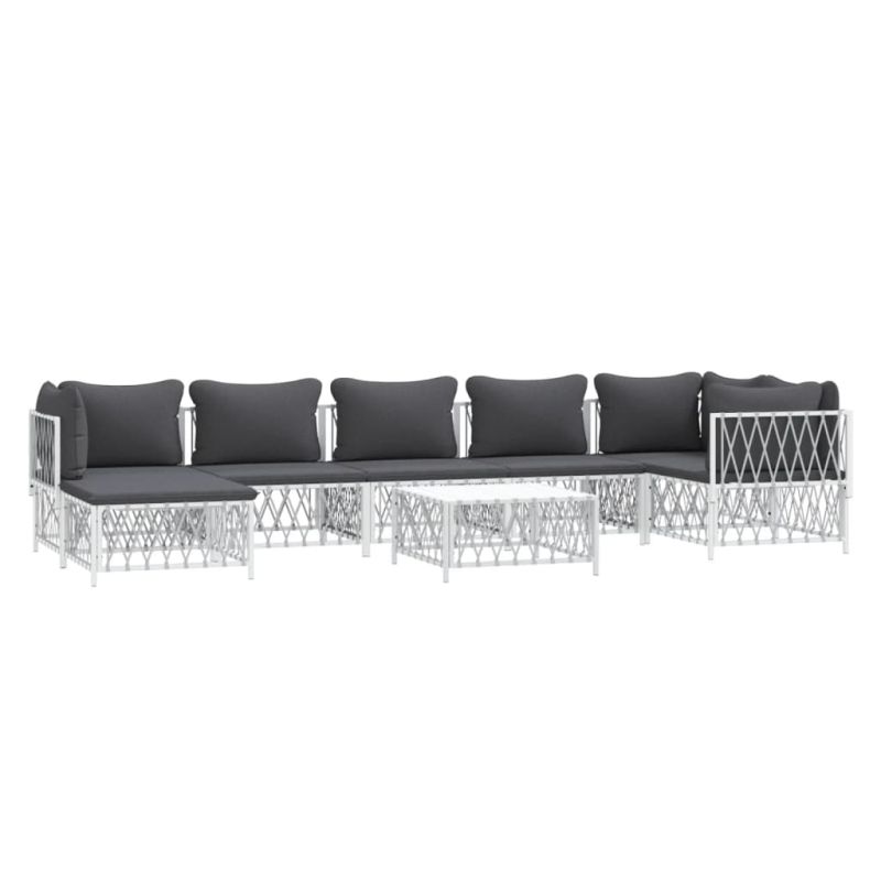 Градински лаундж комплект от 8 части с възглавници бял стомана