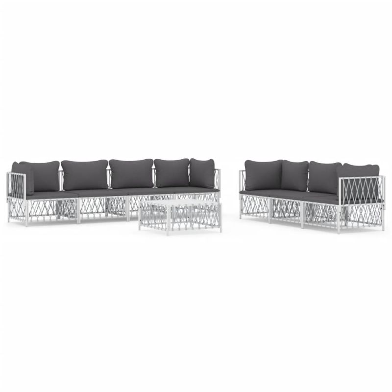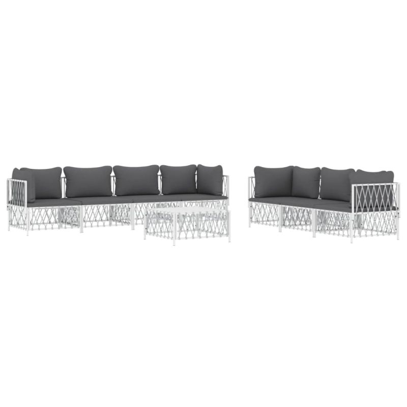 Градински лаундж комплект от 8 части с възглавници бял стомана