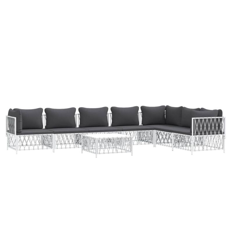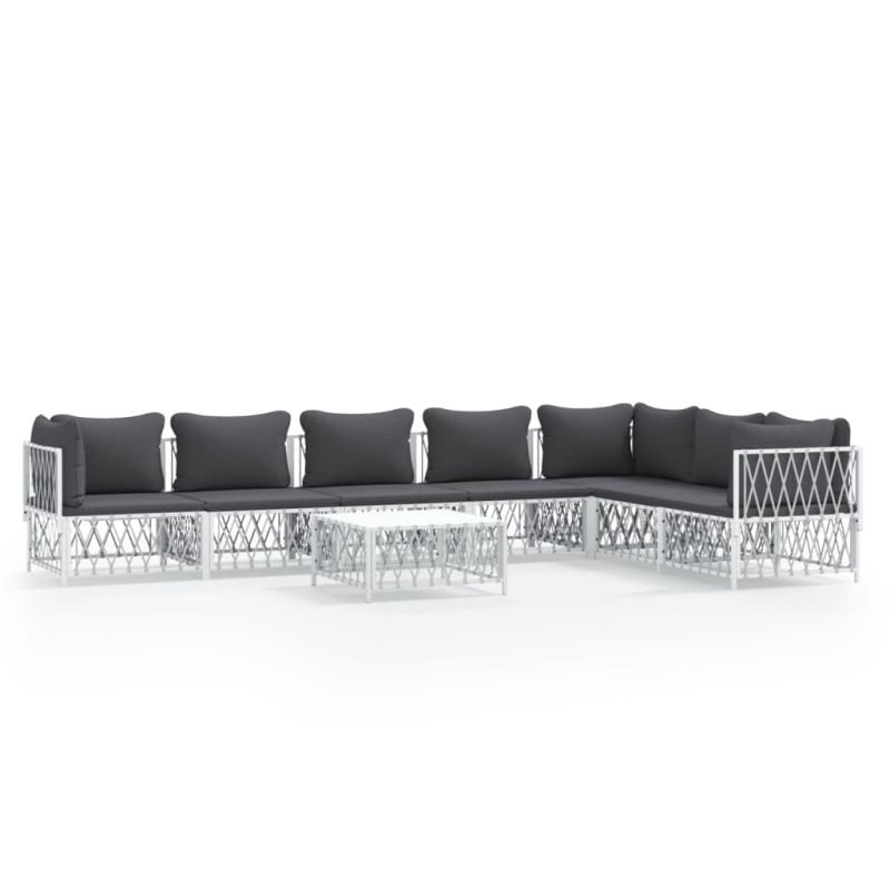 Градински лаундж комплект от 8 части с възглавници бял стомана