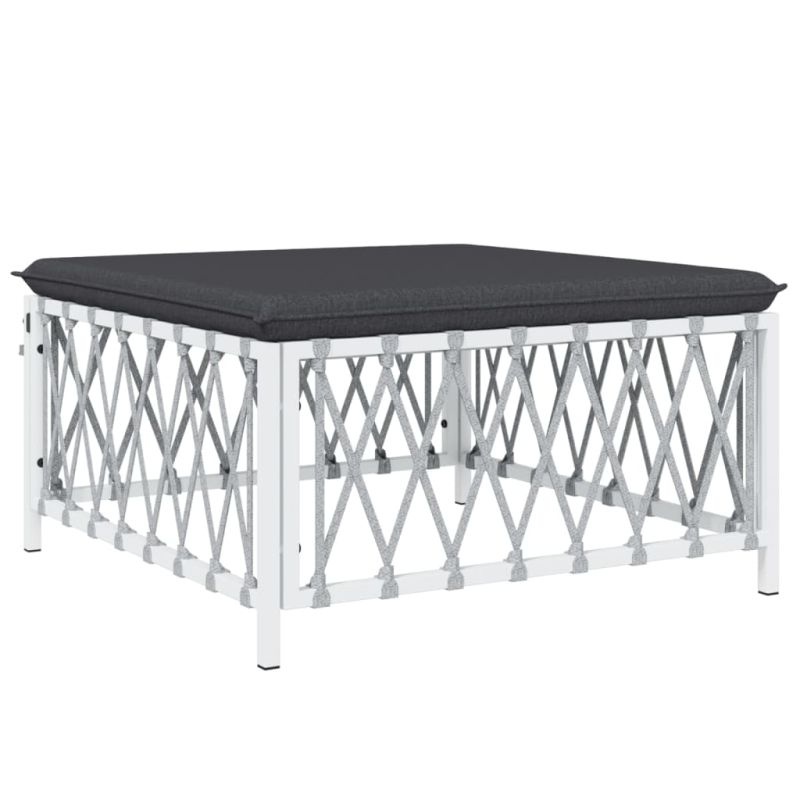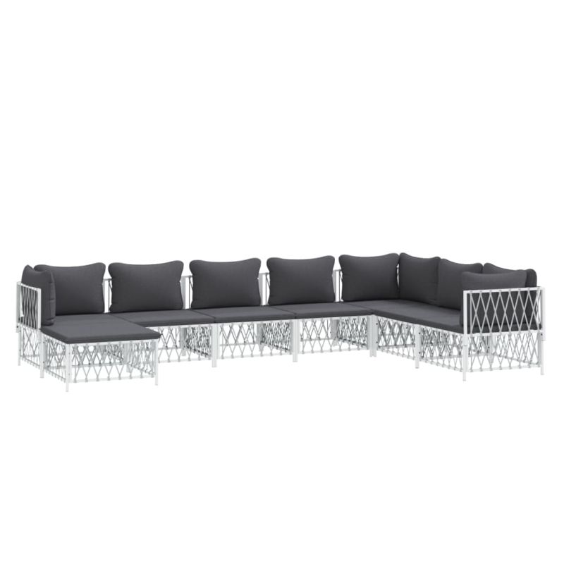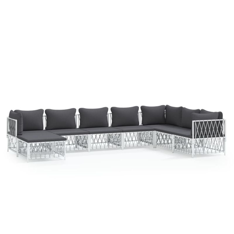 Градински лаундж комплект от 8 части с възглавници бял стомана