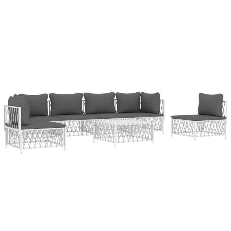 Градински лаундж комплект 7 части с възглавници бял стомана