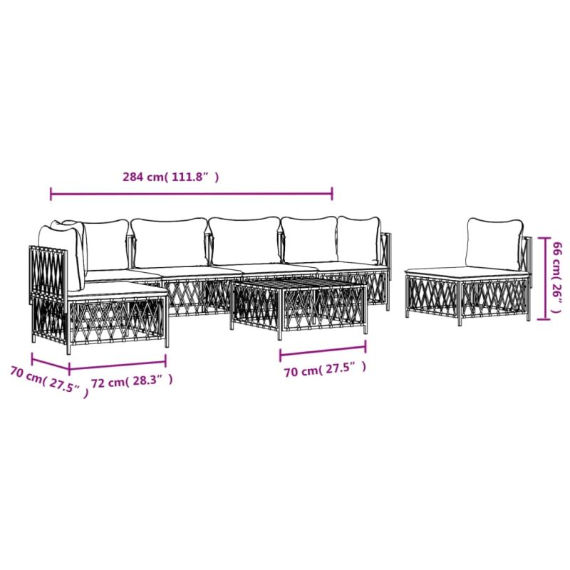 Насладете се на чаша кафе или чай на открито с този удобен градински лаундж комплект! Издръжлив материал: Тъканият плат е всеки текстил, образуван чрез тъкане. Това е изключително полезен вид плат, който използваме много в ежедневието си поради неговата издръжливост и гъвкавост.Здрава рамка: Прахово боядисаната стоманена рамка прави лаундж комплекта здрав и стабилен за ежедневна употреба на открито.Удобно седене: Облегалката добавя повече комфорт при седене на дивана за открито. Освен това дебело подплатените възглавници осигуряват комфорт по време на седене.Модулен дизайн: Комплектът диван е гъвкав и лесен за преместване, така че можете да го комбинирате с други модулни сегменти в уеб магазина, за да създадете свои лични конфигурации на градински лаундж комплект! Забележка:За да сте сигурни, че вашите външни мебели ще останат красиви, ви препоръчваме да ги защитите с водоустойчиво покривало. Максимално 110 кг на седалка. Съобразете се с риска от открит огън и други източници на силна топлина в близост до продукта.