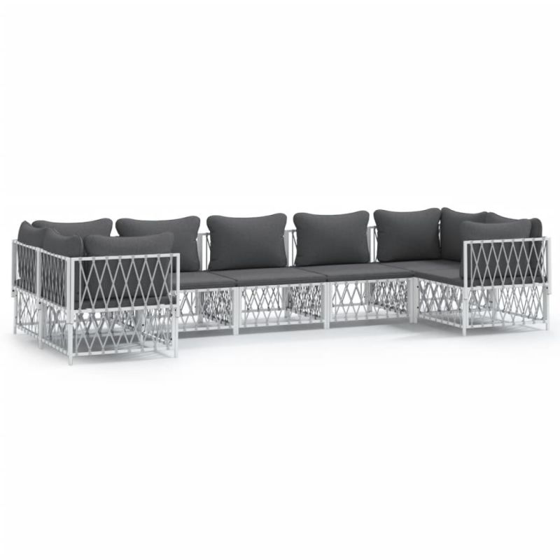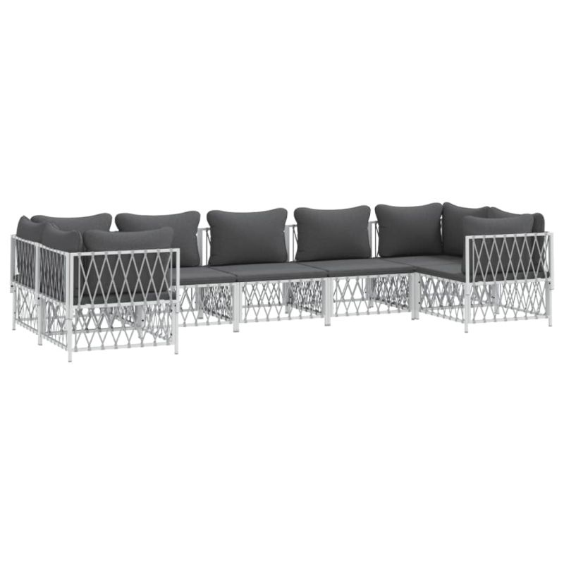 Градински лаундж комплект 7 части с възглавници бял стомана