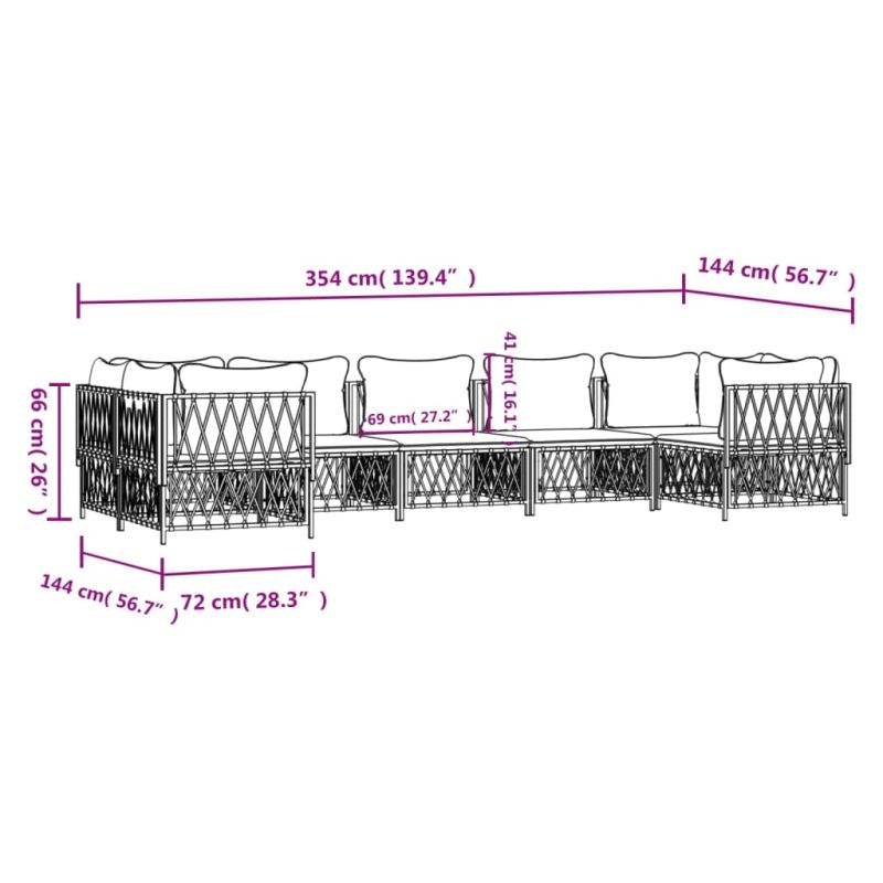 Насладете се на чаша кафе или чай на открито с този удобен градински лаундж комплект! Издръжлив материал: Тъканият плат е всеки текстил, образуван чрез тъкане. Това е изключително полезен вид плат, който използваме много в ежедневието си поради неговата издръжливост и гъвкавост.Здрава рамка: Прахово боядисаната стоманена рамка прави лаундж комплекта здрав и стабилен за ежедневна употреба на открито.Удобно седене: Облегалката добавя повече комфорт при седене на дивана за открито. Освен това дебело подплатените възглавници осигуряват комфорт по време на седене.Модулен дизайн: Комплектът диван е гъвкав и лесен за преместване, така че можете да го комбинирате с други модулни сегменти в уеб магазина, за да създадете свои лични конфигурации на градински лаундж комплект! Забележка:За да сте сигурни, че вашите външни мебели ще останат красиви, ви препоръчваме да ги защитите с водоустойчиво покривало. Максимално 110 кг на седалка. Съобразете се с риска от открит огън и други източници на силна топлина в близост до продукта.