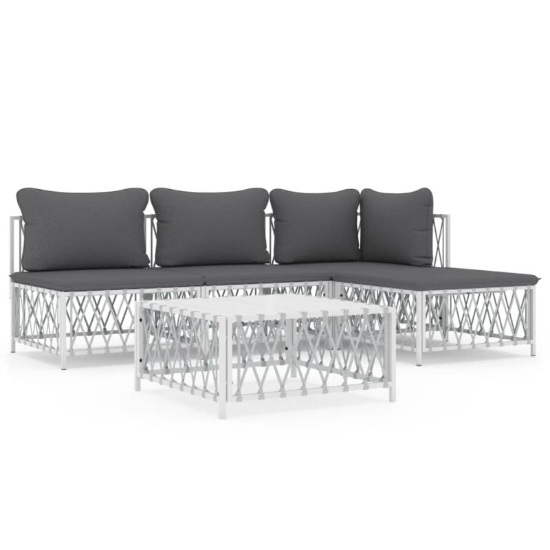 Градински лаундж комплект 5 части с възглавници бял стомана