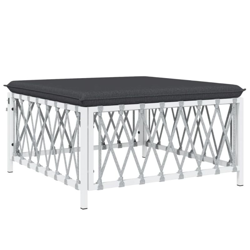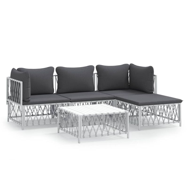 Градински лаундж комплект 5 части с възглавници бял стомана