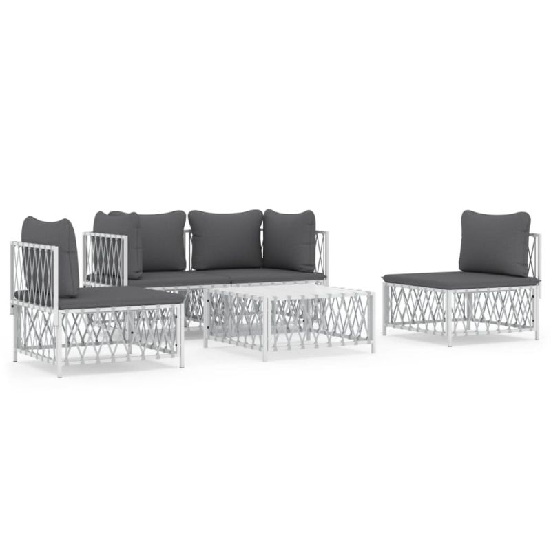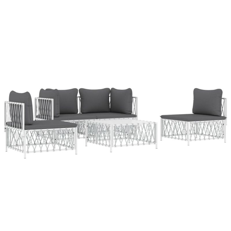 Градински лаундж комплект 5 части с възглавници бял стомана