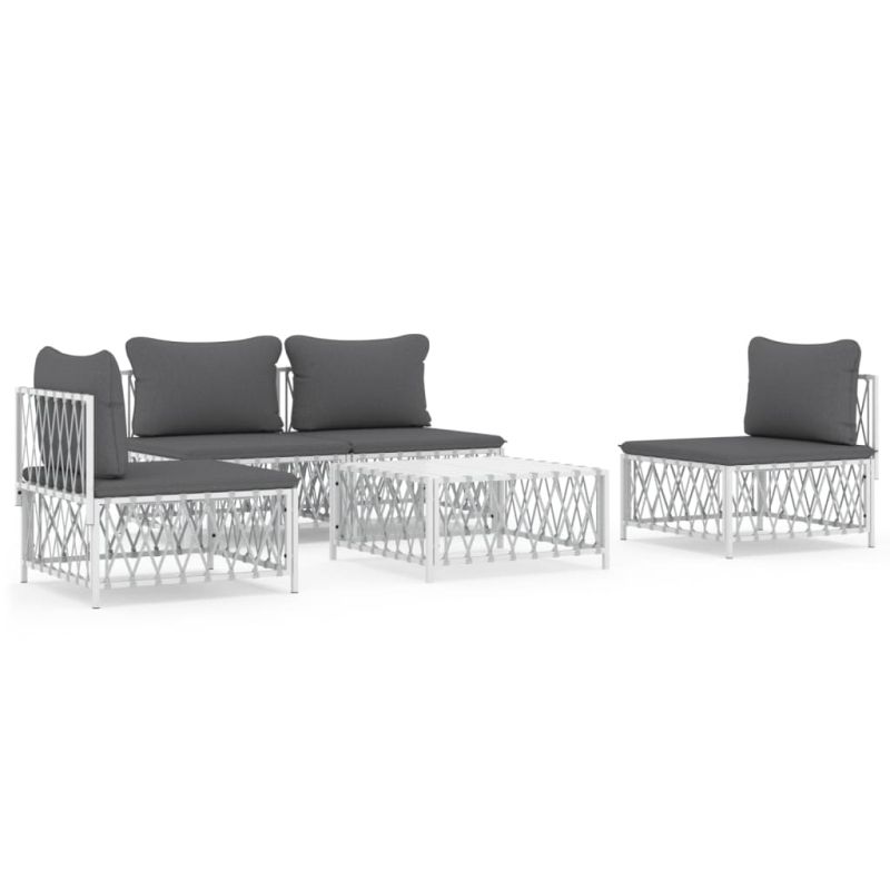 Градински лаундж комплект 5 части с възглавници бял стомана