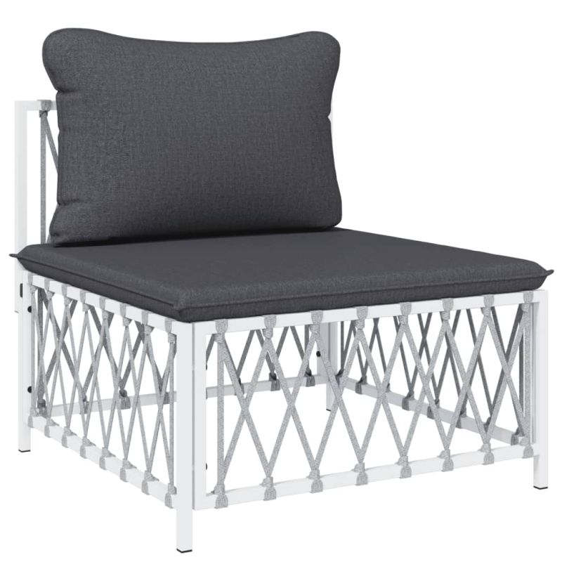 Насладете се на чаша кафе или чай на открито с този удобен градински лаундж комплект! Издръжлив материал: Тъканият плат е всеки текстил, образуван чрез тъкане. Това е изключително полезен вид плат, който използваме много в ежедневието си поради неговата издръжливост и гъвкавост.Здрава рамка: Прахово боядисаната стоманена рамка прави лаундж комплекта здрав и стабилен за ежедневна употреба на открито.Удобно седене: Облегалката добавя повече комфорт при седене на дивана за открито. Освен това дебело подплатените възглавници осигуряват комфорт по време на седене.Модулен дизайн: Комплектът диван е гъвкав и лесен за преместване, така че можете да го комбинирате с други модулни сегменти в уеб магазина, за да създадете свои лични конфигурации на градински лаундж комплект! Забележка:За да сте сигурни, че вашите външни мебели ще останат красиви, ви препоръчваме да ги защитите с водоустойчиво покривало.