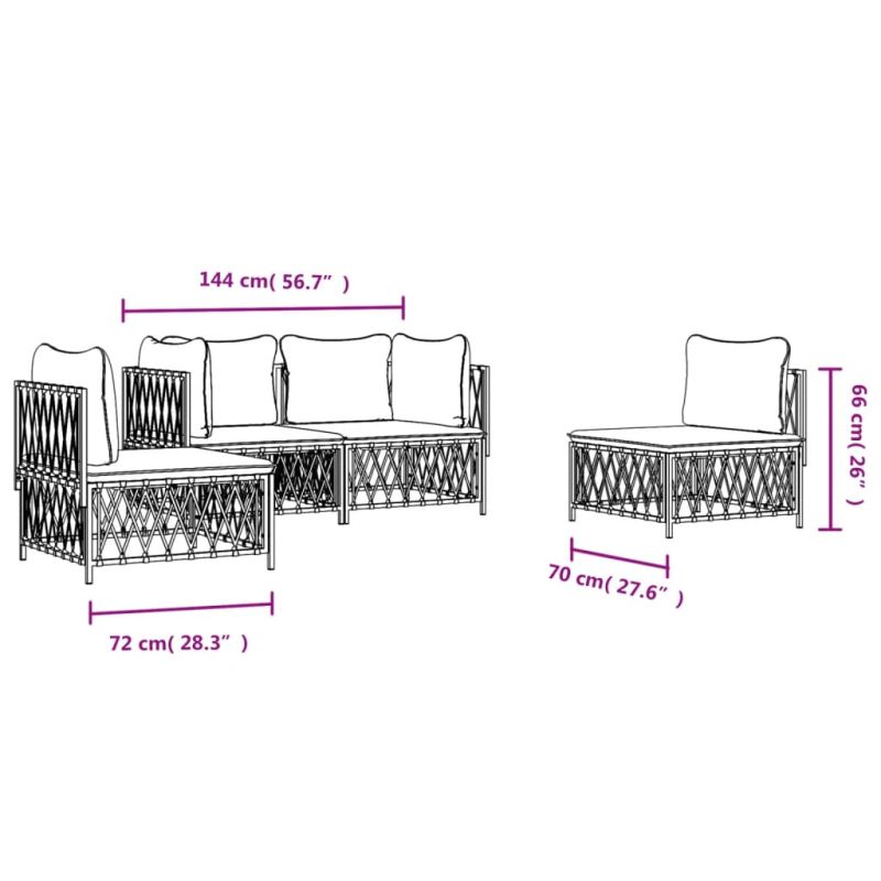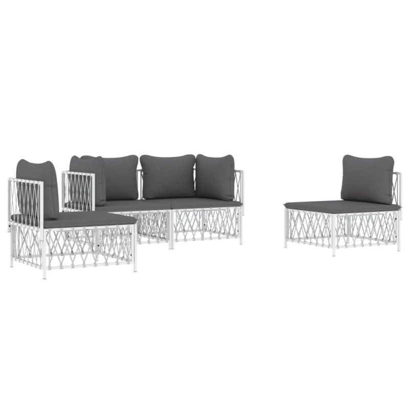 Градински лаундж комплект 4 части с възглавници бял стомана