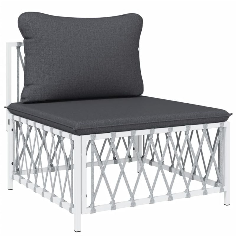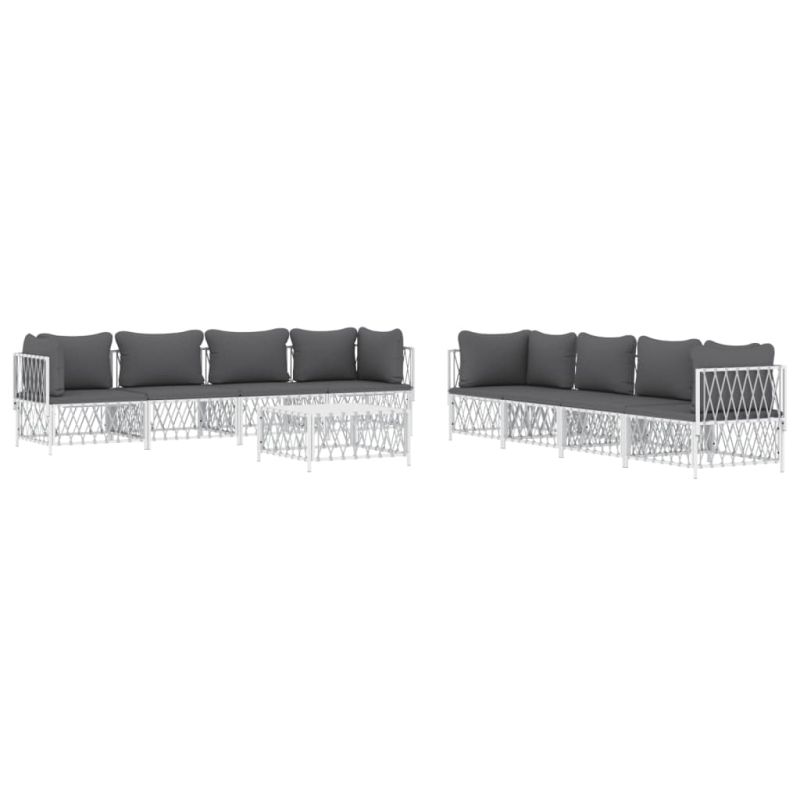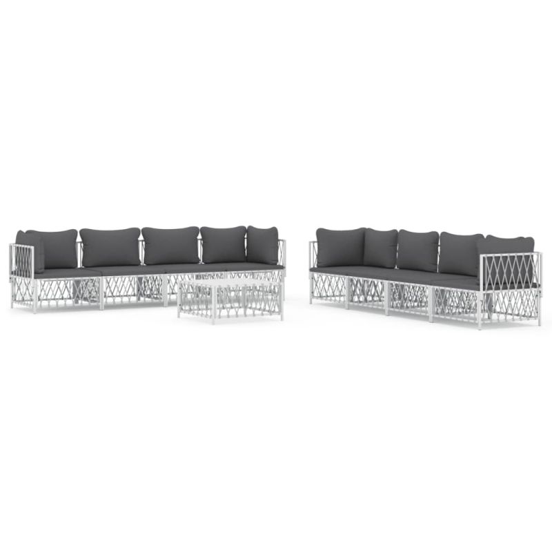 Градински лаундж комплект 9 части с възглавници бял стомана