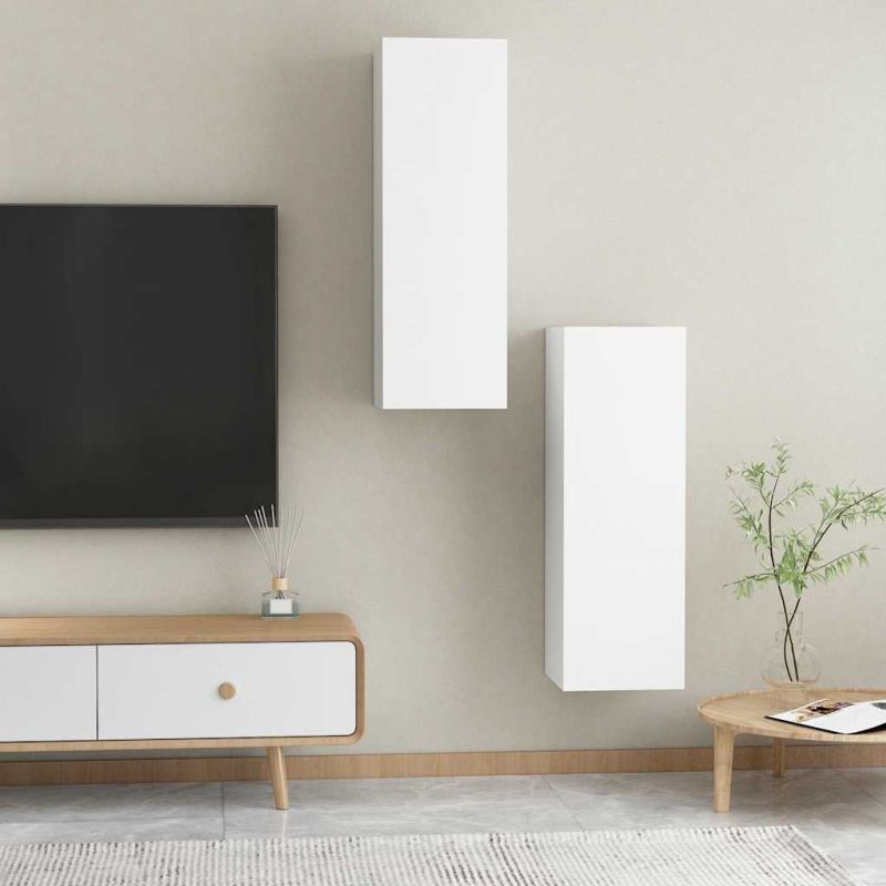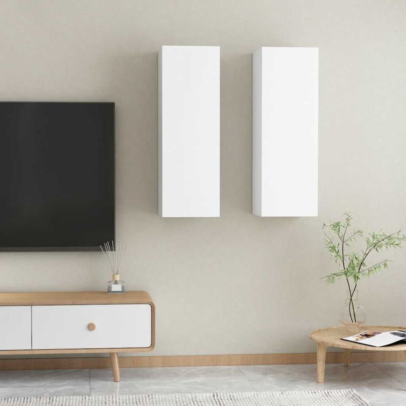 ТВ шкафове, 2 бр, бели, 30,5x30x90 см, инженерно дърво