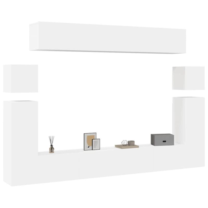 Комплект ТВ шкафове от 8 части инженерно дърво Бял гланц