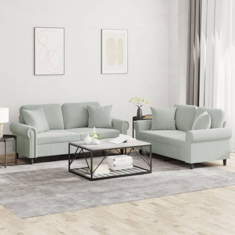 Комплект дивани 2 части с възглавници светлосив кадифе