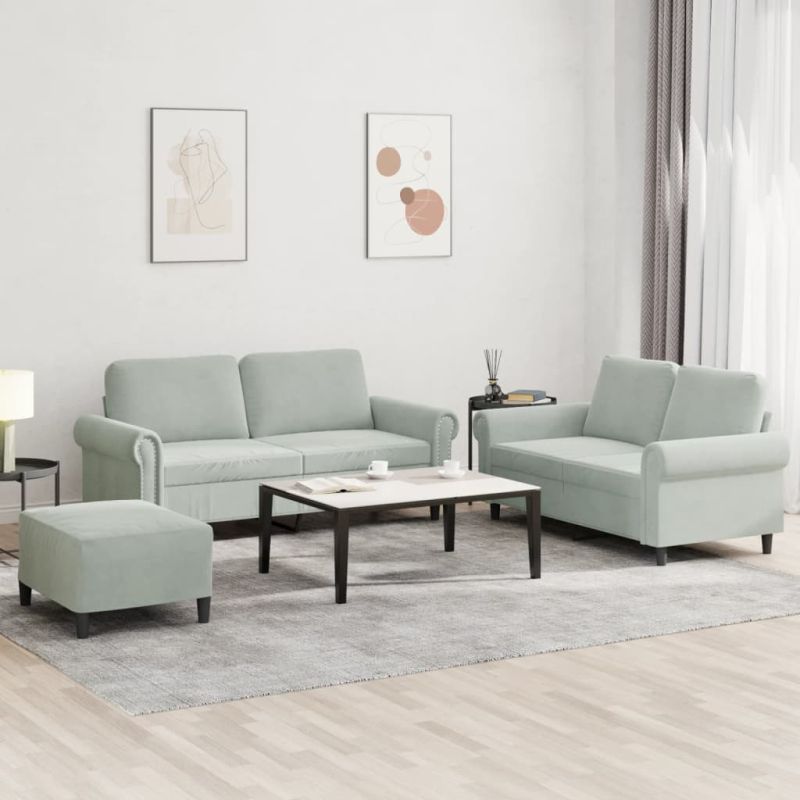Комплект дивани от 3 части с възглавници, светлосив, кадифе
