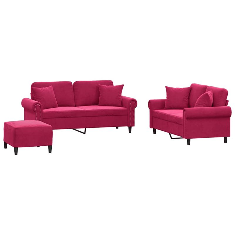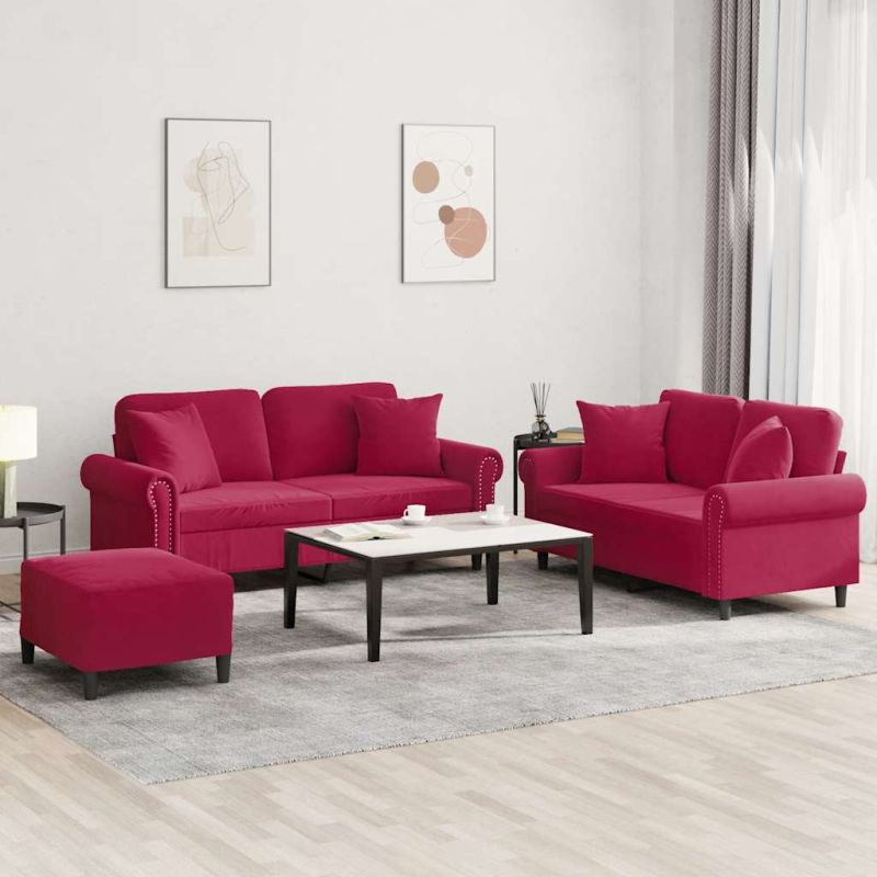 Начало Дом и градина Мебели Дивани Комплект дивани 3 части с възглавници, виненочервен, кадифе