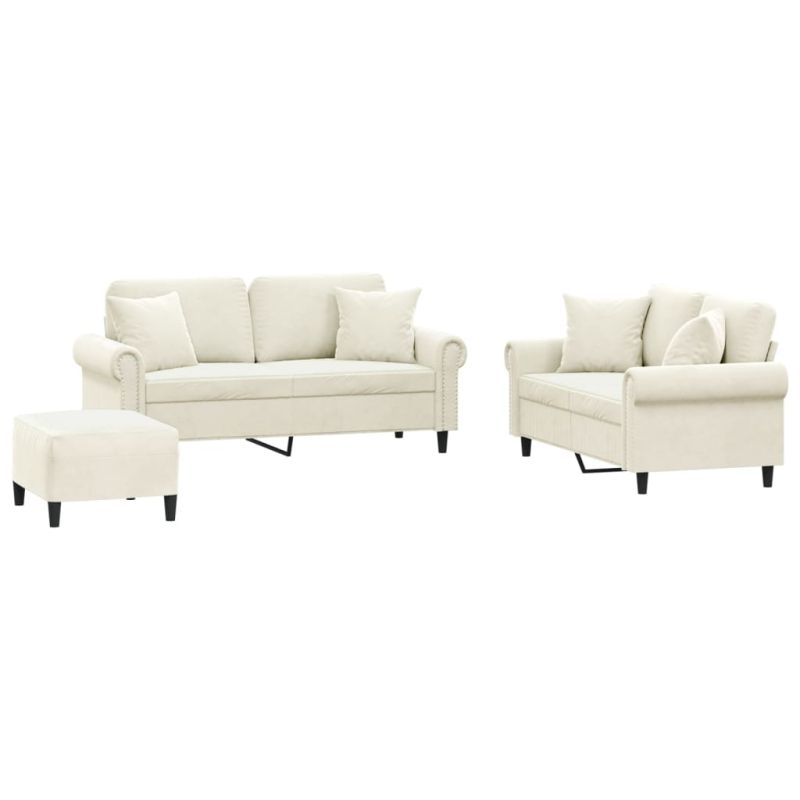 Комплект дивани 3 части с възглавници, кремав, кадифе