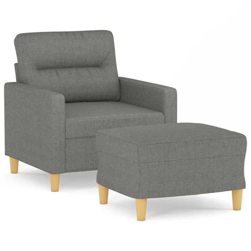 Това кресло с табуретка е отлично място за разговори, четене, гледане на телевизия или просто почивка. То е предназначено да бъде фокусна точка във вашия дом. Издържлива тъкан: Тъканта се отличава със семпъл и изчистен вид и е дишаща и издръжлива.Здрава и стабилна рамка: Шперплатът и металната рамка на креслото осигуряват здравина и стабилност. Рамката на табуретката също е изработена от шперплат.Удобна седалка: Фотьойлът е много удобен с дебело подплатената седалка, подлакътниците и възглавницата за гърба.Функционална табуретка: Тази табуретка е подходяща за опора за крака, когато лежите на диван или наклоняем стол, като същевременно ви предлага допълнително място за сядане във вашата стая. Освен това семплият дизайн и компактният размер я правят идеална за сядане почти навсякъде в жилищното ви пространство.Привличащ вниманието дизайн: С изчистен, но модерен дизайн тази мека мебел е предназначена да привлича вниманието във вашата стая. Забележка:Всеки продукт се доставя с ръководство за сглобяване в кашона за лесно сглобяване.