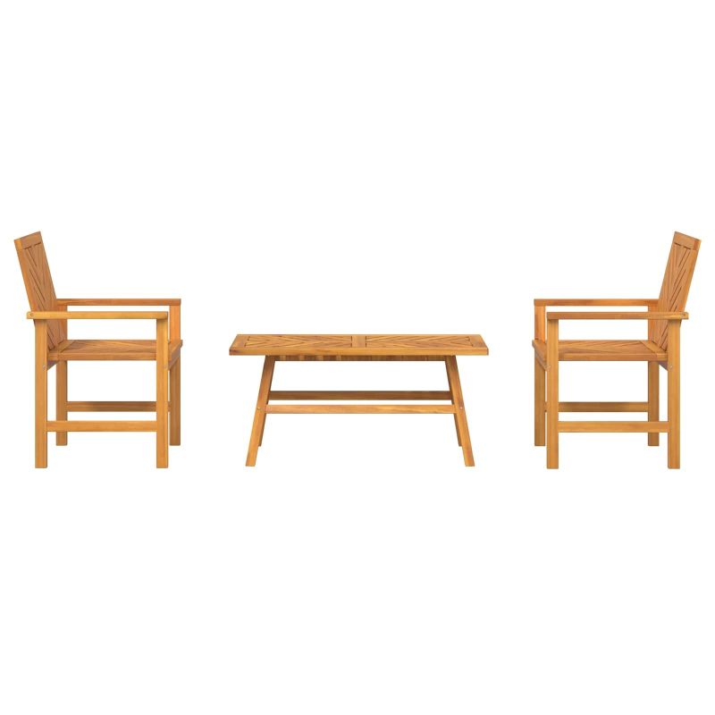 Променете градината или терасата си с този модерен комплект, който добавя стил. С елегантния си дизайн и простота, той е идеален за всеки, който иска да освежи своето открито пространство. Представете си да се отпуснете на свеж въздух, заобиколени от красотата на природата. Масивна акациева дървесина: Здрава и устойчива на времето, това е идеален материал за дълготрайност и стил. Кафявият цвят безпроблемно пасва на всяка градина. Представителен гръб: Завършен гръб за елегантна визия и гъвкавост при подреждане, идеален както до стена, така и самостоятелно. Функционални подлакътници: Комфортни и естетически, те осигуряват необходимата подкрепа за отпочиване. Подпори за крака: Стабилни и здрави, краката осигуряват сигурна основа за всеки компонент от комплекта. Прости инструкции за поддръжка: Лесно за поддържане – просто избършете с влажна кърпа. Максимално 110 кг на седалка.