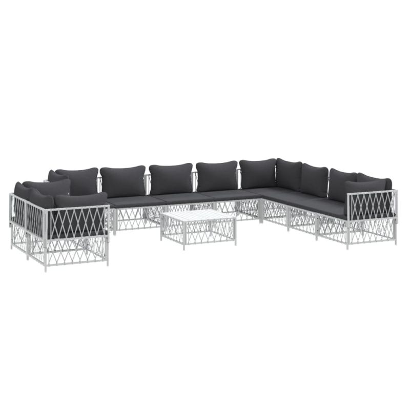 Градински лаундж комплект 11 части с възглавници бял стомана