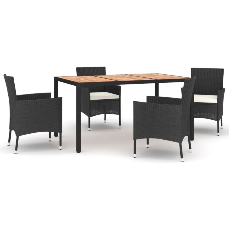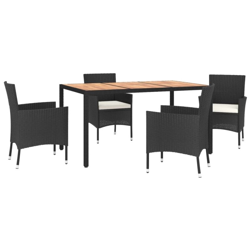 Градински трапезен комплект възглавници 5 части черен полиратан